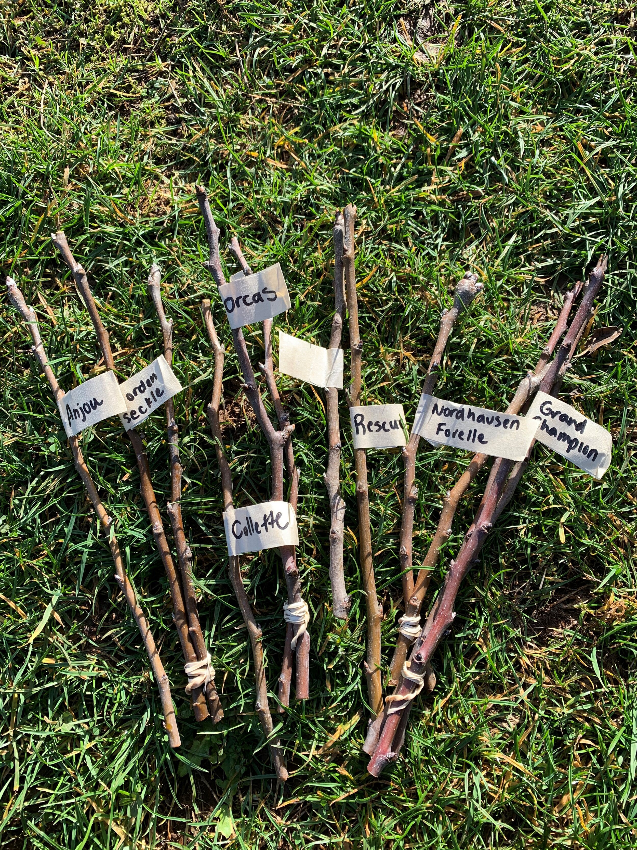 Each stick is approx. 8-10” long. We aim for scions that are about pencil width in diameter when possible, but some variation may occur.